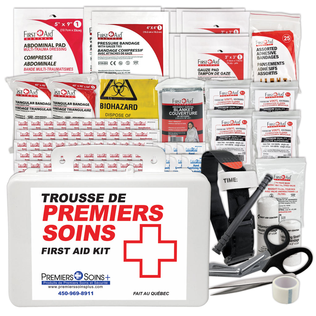 Les trousses suivantes répondent aux exigences mises à jour de la norme CSA Z1220-24 pour les milieux de travail. Le Québec et La Nouvelle-Écosse a adopté ces nouvelles normes le 1er août 2024. Chaque province étant responsable de déterminer les normes qu'elle applique, il est possible qu'elle adopte ultérieurement ces trousses mises à jour. Premiers Soins Plus continuera d'informer ses clients des changements en temps opportun. Le type de trousse de premiers soins requis pour un lieu de travail dépend du nombre d'employés par quart de travail et du niveau de risque de blessure.